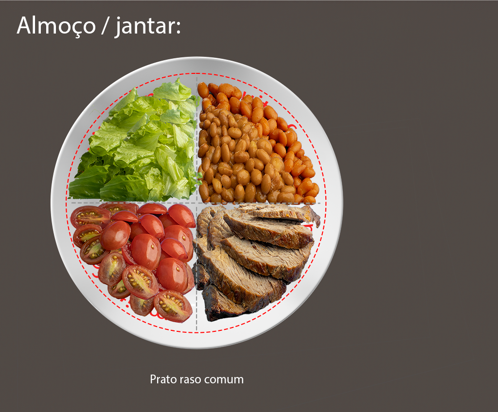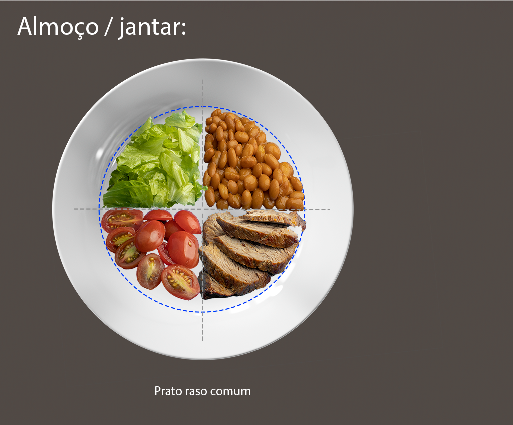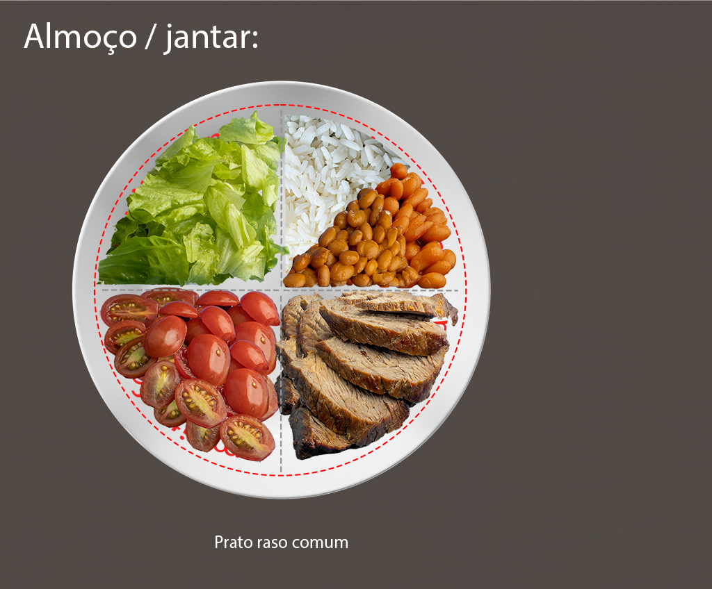 - Quadrante Inferior Direito (Proteínas): Carnes vermelhas (bovina, suína), peixe (salmão, tilápia, bacalhau), frango (peito, coxa, sobrecoxa), ovos e fontes de proteína vegetal como a lentilha e o grão-de-bico.